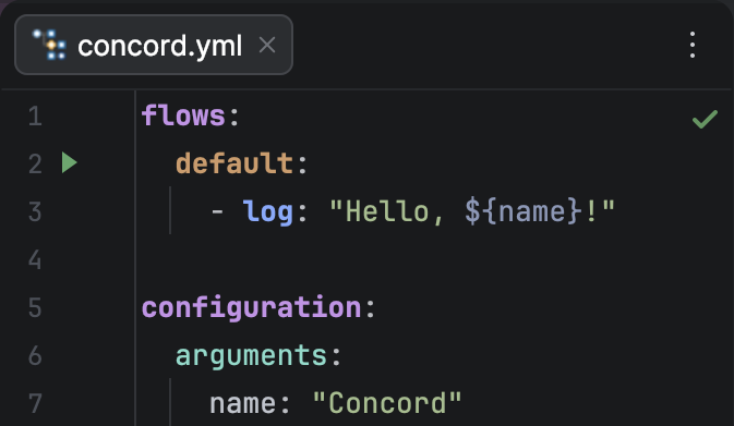 The Concord IntelliJ Plugin allows you to execute Concord flows locally directly from the IDE. This is powered by the Concord CLI, enabling rapid feedback loops during development without pushing changes to the server.